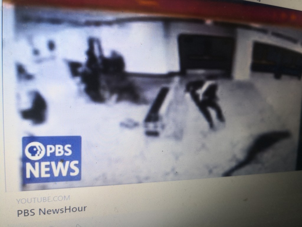 Die ersten zehn Sekunden der längeren PBS-Version zeigen ein merkwürdiges Verhalten eines Polizisten in der oberen linken Bildecke.